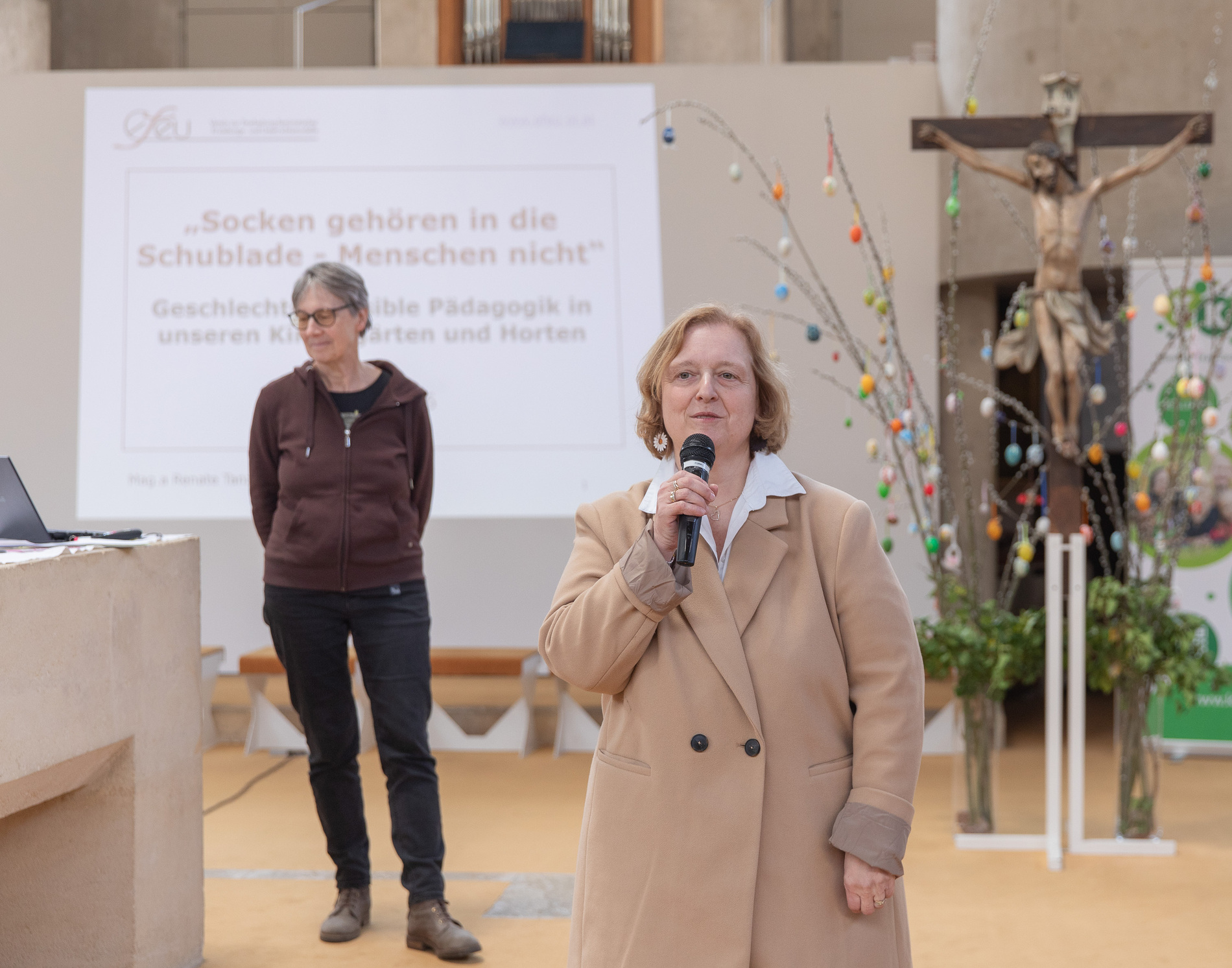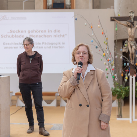 Zu Beginn hielt Mag.a Renate Tanzberger den Vortrag "Socken gehören in die Schublade - Menschen nicht" - gendersensible Pädagogik in unseren Kindergärten und Horten. Hier konnten wir Basiswissen vertiefen und dieses in den Alltag mitnehmen.